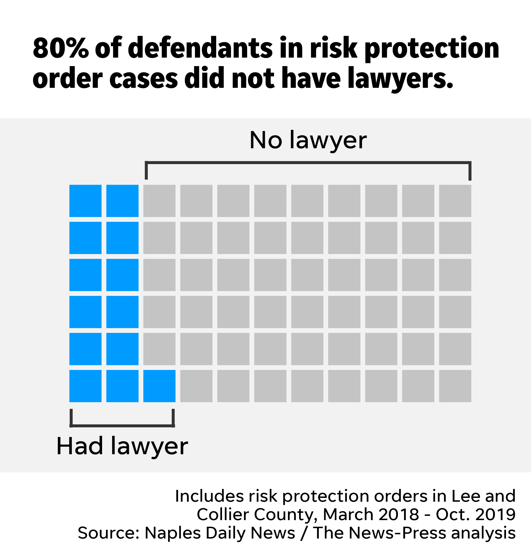The Daily News and The News-Press reviewed each of the 66 risk protection order cases Collier and Lee law enforcement officers pursued through October. Of the 66 people named in the cases, 53 did not have an attorney to defend them, according to court records.