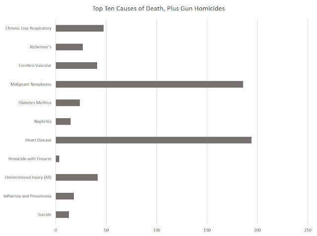 These are 2013 numbers, so let’s compare to other causes of death in the United States, according to the Centers for Disease Control.
